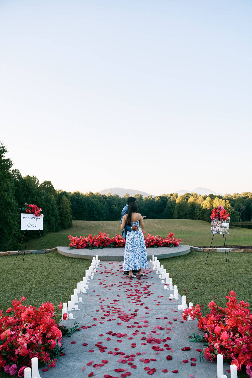 Our decorations set the scene for a magical proposal overlooking the Georgia Apalacian mountains at sunset. Photos by Arcadia Studios